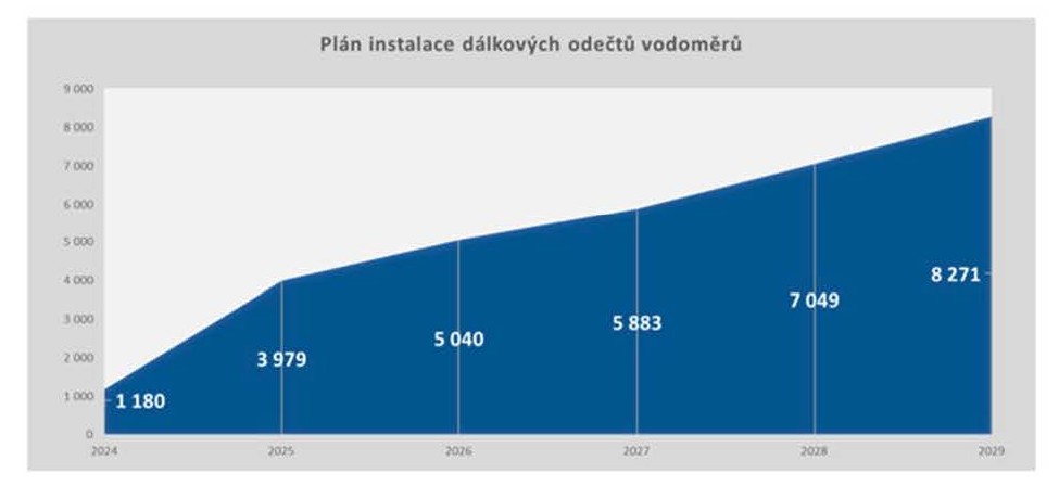 Chytré vodoměry s dálkovým odečtem instalujeme tam, kde máme tuto službu smluvně domluvenou s vlastníkem vodovodu. Z celkového počtu více než 13 000 spravovaných vodoměrů plánujeme během 5 let osadit chytrými vodoměry více než 65 % odběrných míst. Týká se to například vodovodů Křivina, Kostelec nad Orlicí, Císařská Studánka, Tichá Orlice, Doudleby nad Orlicí, Záměl a Bolehošť. Nový chytrý vodoměr obvykle instalujeme v okamžiku, kdy starému vodoměru končí platnost cejchu (ověření).